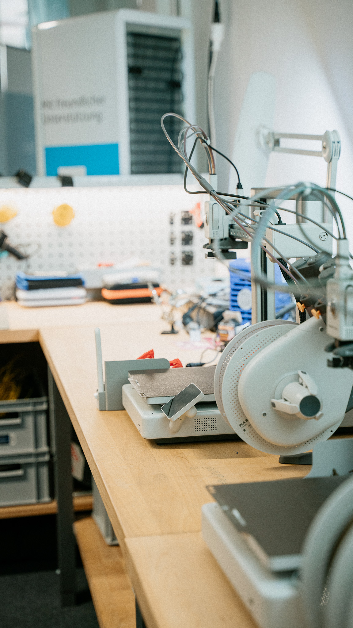 Von Prototyping bis 3D-Druck: Du kannst verschiedene Geräte nutzen, um Deine Idee greifbar zu machen. Wichtig: Für einige Geräte ist eine kurze Einweisung nötig – einfach im Formular Häkchen setzen, wir melden uns!